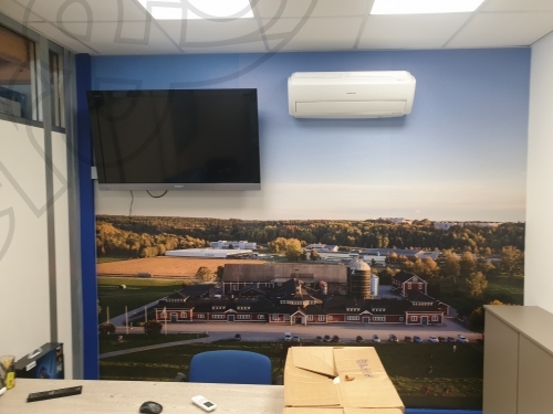 tessuto mambo tensionato su profili alluminio fissati a parete