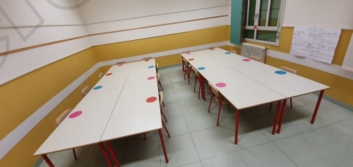 tessuto mambo tensionato su profili alluminio fissati a parete